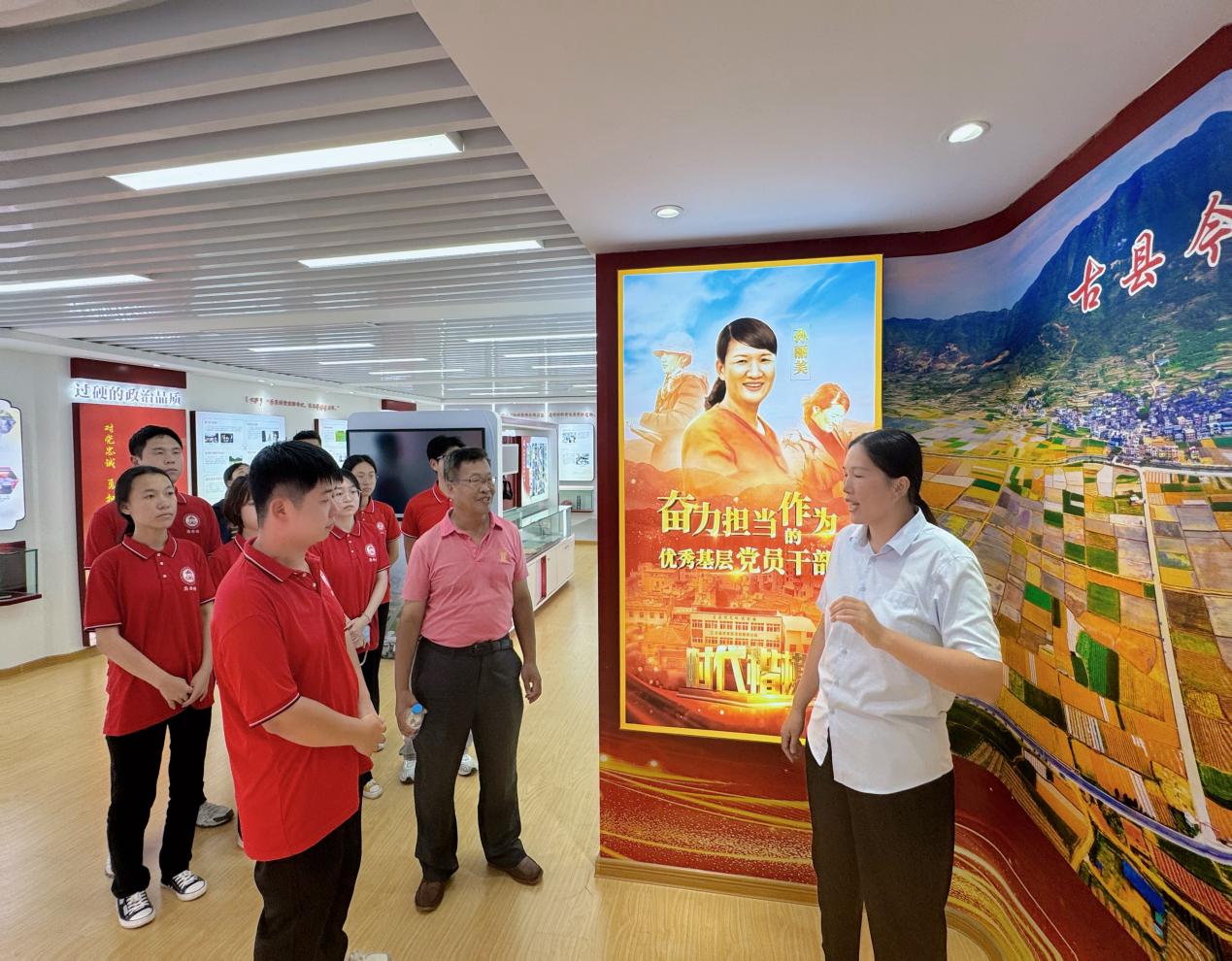 “作为‘四下基层’发源地的霞浦县,是关于加强和改进人民信访工作的重要思想的萌发地、孕育地和实践地……”在共青团霞浦县委书记谢良焰的陪同下,实践队走进“把心贴近人民·四下基层发源地”主题展,开展沉浸式、体验式学习,通过一张张珍贵的照片、一件件历史物件,追溯霞浦的足迹往事,感悟其中的领袖思想伟力。随后,在“时代楷模”孙丽美同志先进事迹展示馆内,孙丽美同志十七年如一日扎根农村,为脱贫攻坚、乡村振兴默默付出的先进事迹,深深打动了在场的每一位实践队成员,更加坚定了大家以青春之力勇担时代重任的信念与决心。
