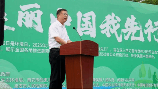 易辉泉在致辞中说,近年来,南安市委、市政府牢固树立“绿水青山就是金山银山”的理念,锚定“美丽南安”建设目标,持续打好蓝天、碧水、净土保卫战,努力完成规划目标任务,不断提升生态环境质量;深化绿色低碳转型,以高水平保护推动高质量发展;有效管控生态环境风险,守住生态保护红线。
