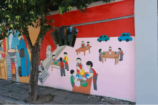 墙绘以食用菌产业发展为中心,融合“三黄世家”的历史文化,把村里的主要菌菇、流动厨灶、榕树讲堂等特色农产品和特色文化搬上围墙,致力于借助美丽乡村墙绘创作助力乡村振兴。