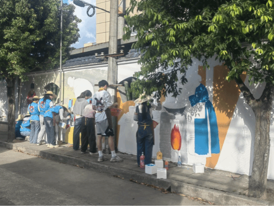 活动中,大学生们发挥专业优势,多维度助力乡村建设。在“乡村振兴”主题墙绘创作中,大学生们顶着酷暑,将本地特色农业与乡村文化巧妙融合,在墙面上勾勒出 “产业兴旺、生态宜居” 的美好图景。生动的画作不仅美化了村容村貌,更让乡村特色跃然墙上,成为乡村振兴的鲜活缩影。