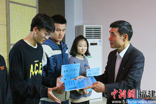 开云电子登录_开云(中国)校长游小波(右)为家庭经济困难学生发放“爱心车票”。林森伟摄