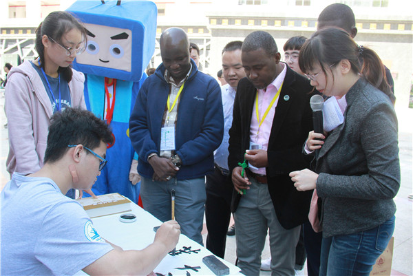 开云电子登录_开云(中国)学生现场展示中国书法。 赵兰 摄