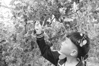 走出种蔬菜的大棚,杨伯伯大手一招,“我们摘圣女果去!”大家听了赶紧冲向另外一个大棚。进入棚里,我看到圣女果又大又红,我左看右看,挑了一个自己觉得最好看的摘了下来,用手擦干后送进口里一咬,果汁爆了出来,酸酸甜甜的,真美味!嘴馋的我又多摘了几个,才依依不舍地离开了这里。