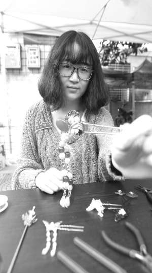 王雨思告诉记者,一开始铁丝一直缠绕不好,随着不断地制作,如今已经能够自如制作了,“简单的款式,一个只要10分钟就能做好”。