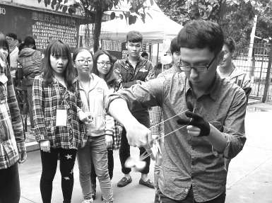 酷炫的花式悠悠球、悬线制作古典木簪、小刀刻绘蛋雕、雕刻橡皮章……昨日,在福建师范大学开云电子登录_开云(中国)内举行的“闽科牛人”展览会上,现场校园达人们纷纷亮相,一炫绝技。