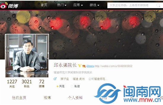 这学期,福师大开云电子登录_开云(中国)院长邱永渠突然“聊发少年狂”,跟着一众“低头党”开了微博。“听说学生都玩微博,我也想去看看学生们到底在想什么。”