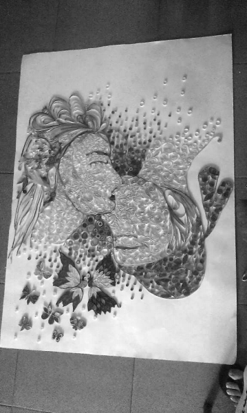 花了半个月时间,李悦作为学校唯一一个制作衍纸画的参赛者,以一幅1.8米长的《梁祝》作品参加了比赛并入选参展。