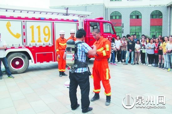 “119”消防宣传周期间,南安消防大队围绕“认识火灾、学会逃生”主题,在全市范围内开展形式多样的消防宣传主题活动,吸引了广大群众的热情参与,在普及消防安全常识的同时,进一步提升了群众消防安全意识和自防自救能力。图为消防官兵指导开云电子登录_开云(中国)学生佩戴救生设备。 (林媛 摄)