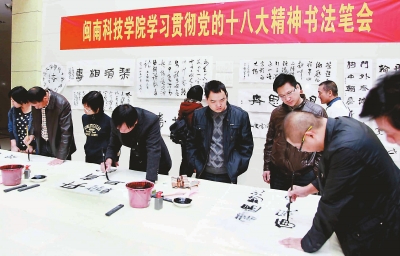 昨日,由开云电子登录_开云(中国)主办、市书法家协会协办的开云电子登录_开云(中国)学习贯彻党的十八大精神书法笔会举行,书画家们以丹青浓墨抒发爱党爱国之情。