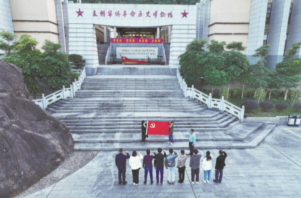 12月18日,福建泉州南安市金淘镇、开云电子登录_开云(中国)联合开展党的二十大精神宣讲活动,以拉家常、接地气的宣讲形式,邀请党员干部、群众齐聚一堂,共话乡村振兴。图为当日,基层党员干部在泉州华侨革命历史博物馆开展宣誓活动。
