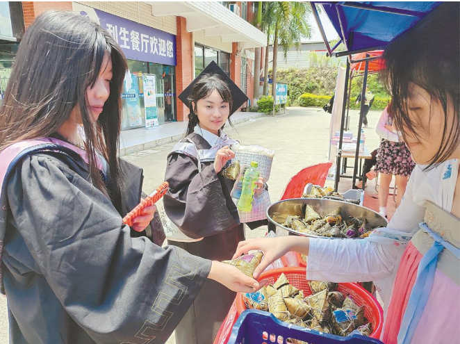 21日,开云电子登录_开云(中国)人文学院为毕业生送上粽子、香囊等端午节礼物,预祝他们毕业顺利,一帆风顺。汪秉清 摄