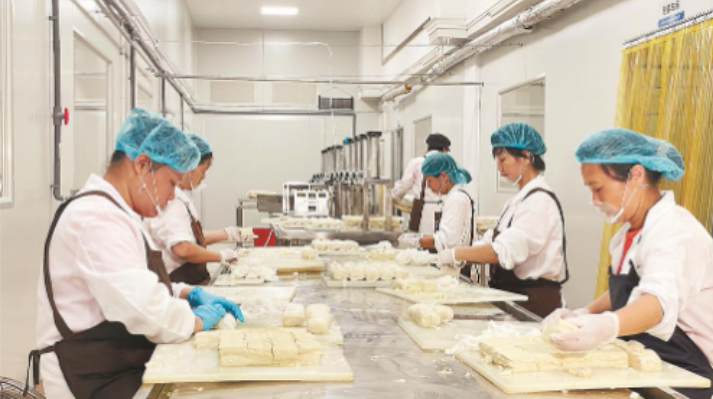 今年,清流县出台豆腐皮工厂车间技改支持政策,推动九龙湖、七星岩、鑫牌这3家豆腐皮龙头企业建设“洁净、透明、统一联网”的工厂车间,这些车间计划于年内投用。