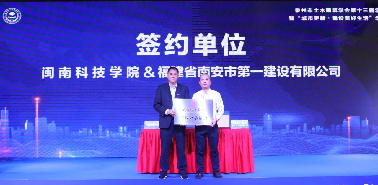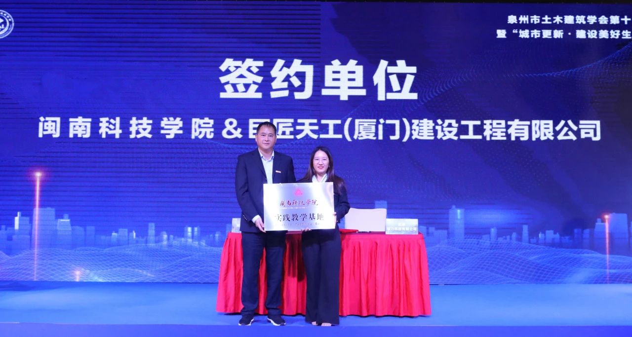 在签约仪式上,泉州市土木建筑学会与福建省国际人才交流协会进行战略合作签约;我校分别与福建省南安市第一建设有限公司、巨匠天工(厦门)建设工程有限公司、北京构力科技有限公司、泉州荣峰工程设计咨询有限公司进行共建实践教学基地签约授牌。