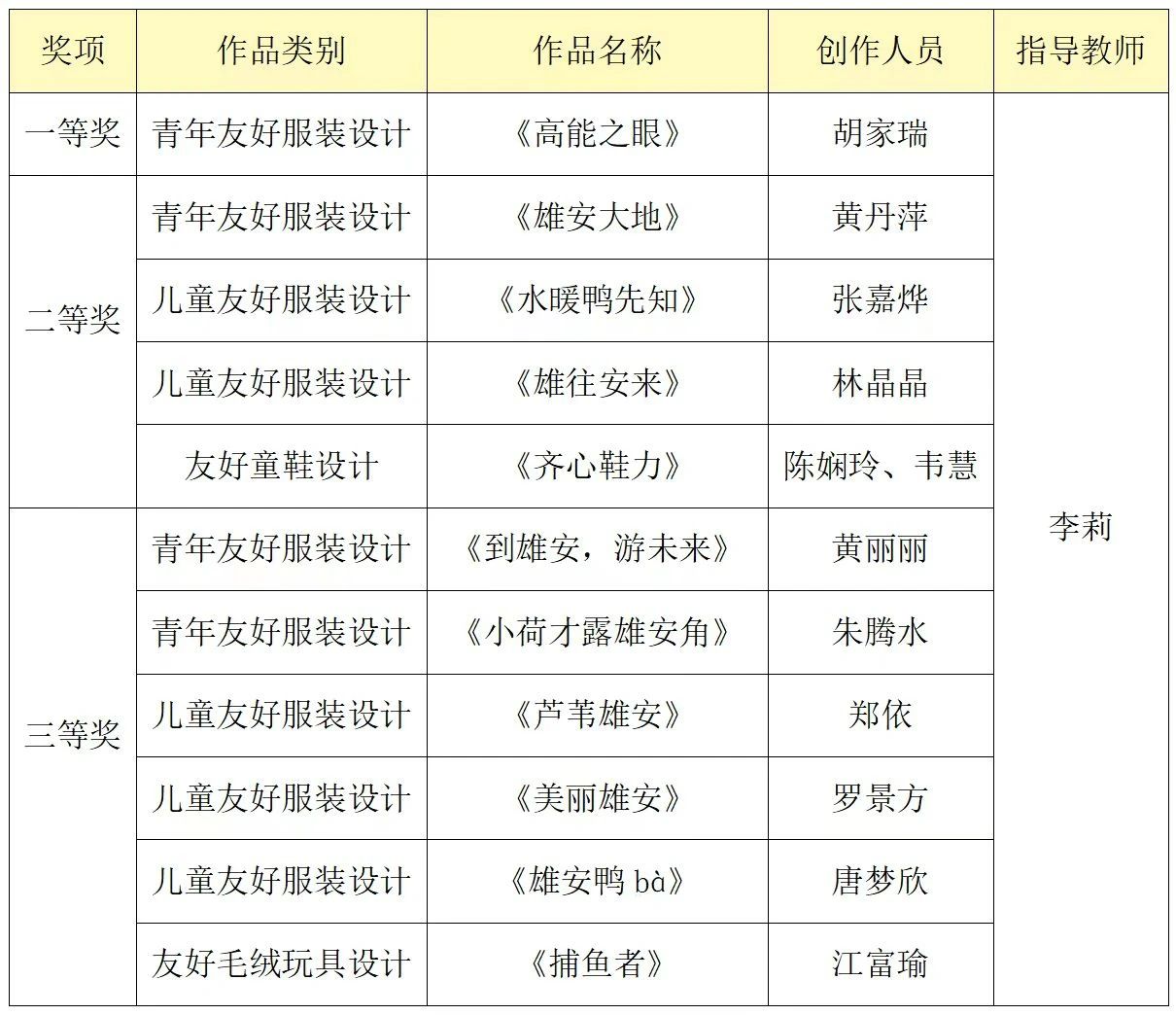 近日,2024雄安新区“未来杯”儿童产业设计大赛公布获奖名单,我校艺术设计学院2022级服装与服饰设计专业学生的参赛作品获11个奖项,其中一等奖1项,二等奖4项,三等奖6项。