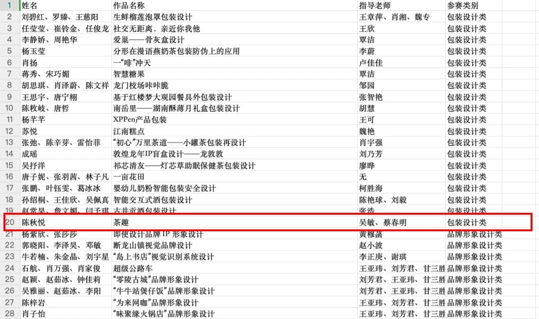 近日,由湖南省包装联合会设计委员会主办的2024年第20届“湖南之星”设计艺术大赛公布获奖名单,我校艺术设计学院2022级产品设计专业陈秋悦的作品《茶趣》(指导老师:吴敏、蔡春明)获包装设计类优秀奖。同时,该作品也获得第20届“中南星奖”设计艺术大赛(湖南赛区)包装设计类优秀奖。