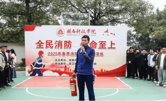 疏散演练结束后,南安市消防救援大队官兵结合高校宿舍火灾典型案例对开展安全教育,为现场师生详细解读了火场逃生姿势、防烟面罩佩戴、消防栓水带连接等关键要领,并重点示范了干粉灭火器“提、拔、握、压”四步操作法。