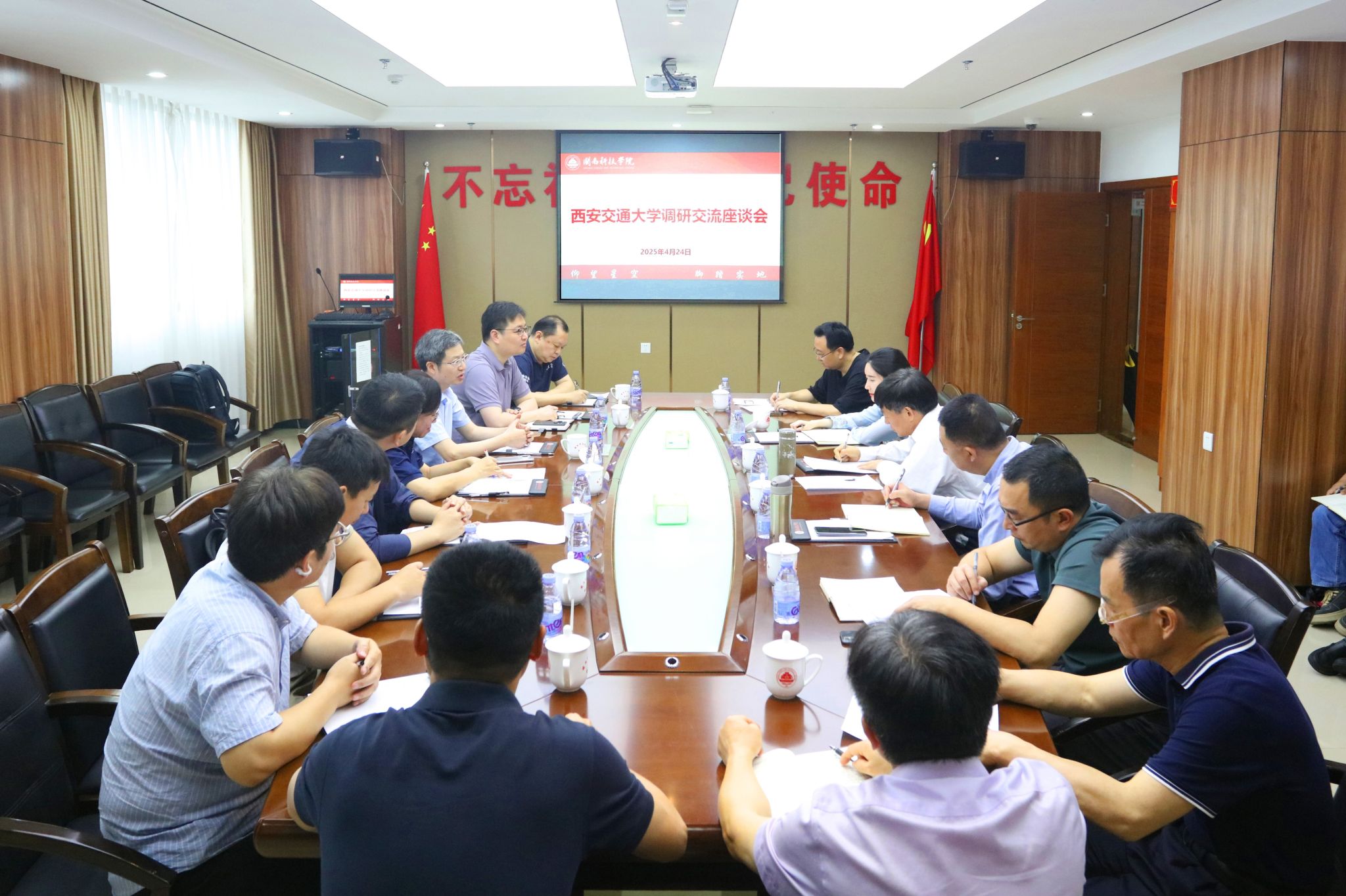 4月24日,西安交通大学校友会秘书长、校友部副主任赵力、科研院产教融合与成果转化处副处长孔春才、科研院综合办公室主任于洋,泉州市五交科技产业研究院执行院长贾强,泉州市鲤城区梅竹书院副院长闫董岭,北京化工大学厦门校友会副会长、通达创智股份总经理骆杰,思量(厦门)资产管理有限公司基金经理、北京化工大学厦门校友会副秘书长钟小建等来我校调研交流。校领导袁自煌、李旭、岳瀚槭热情接待并召开产学研合作交流座谈会。