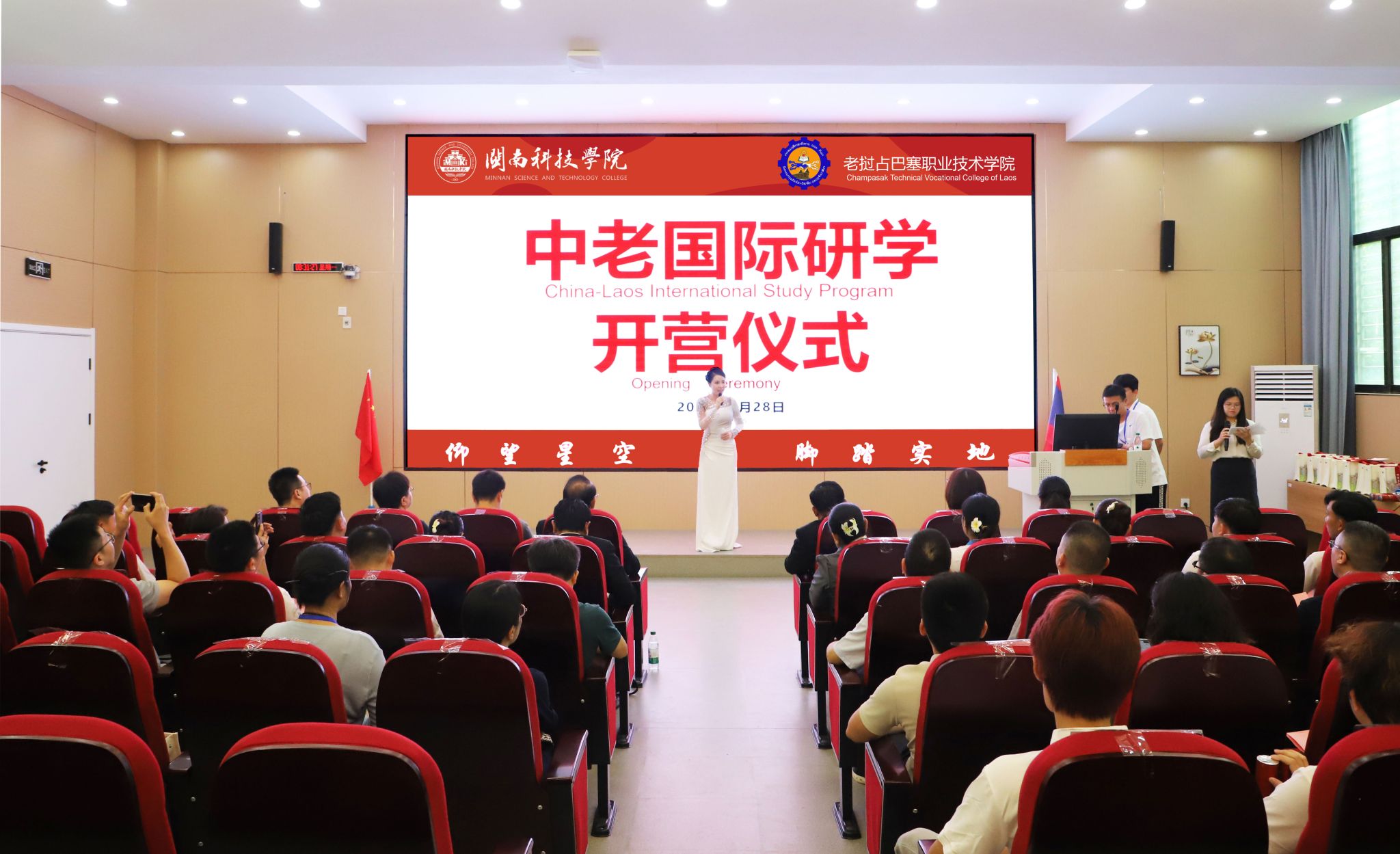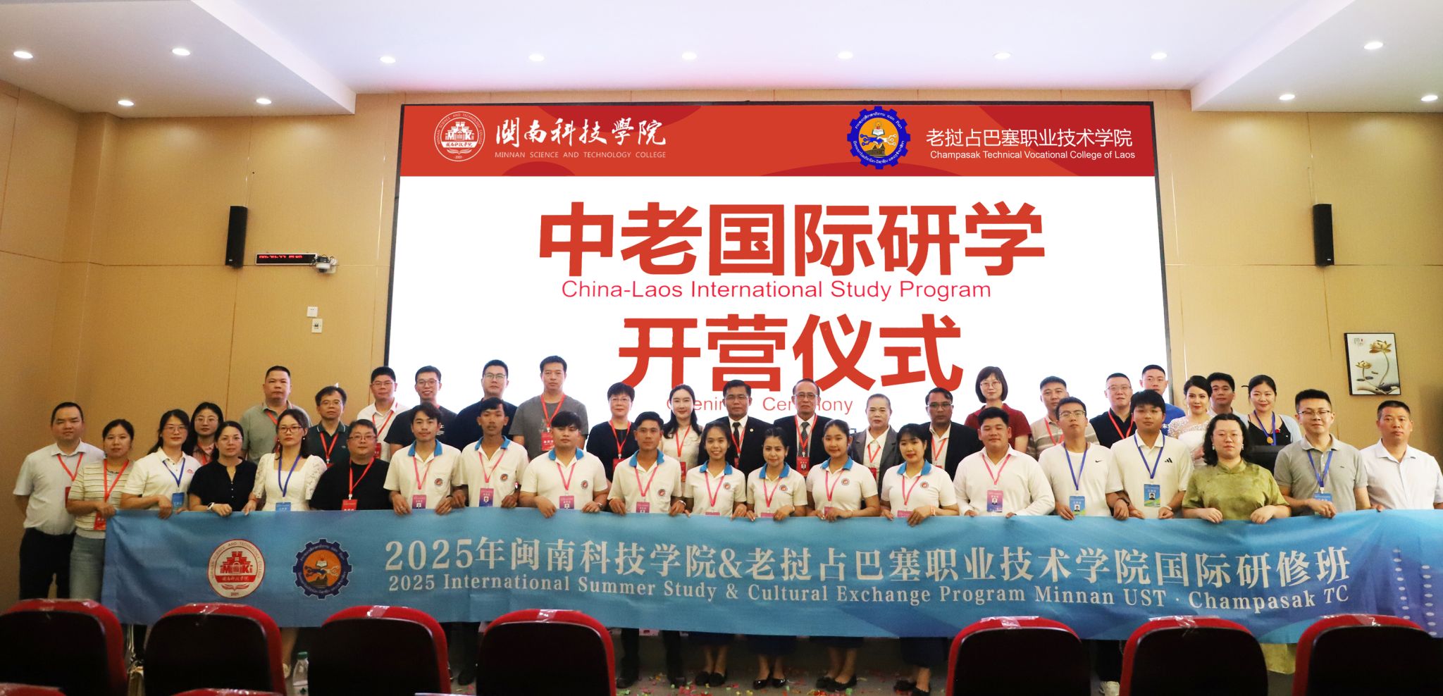 出席今天开营仪式的还有来自国内外的多方代表:老挝占巴塞职业技术学院师生代表团专程参与;泉州师范学院、南安市第三小学、南安市创石科创服务有限公司等合作单位代表应邀出席;我校与会人员包括相关职能部门负责人、各二级学院党政负责同志,以及师生代表、工作人员和学生志愿者团队等。