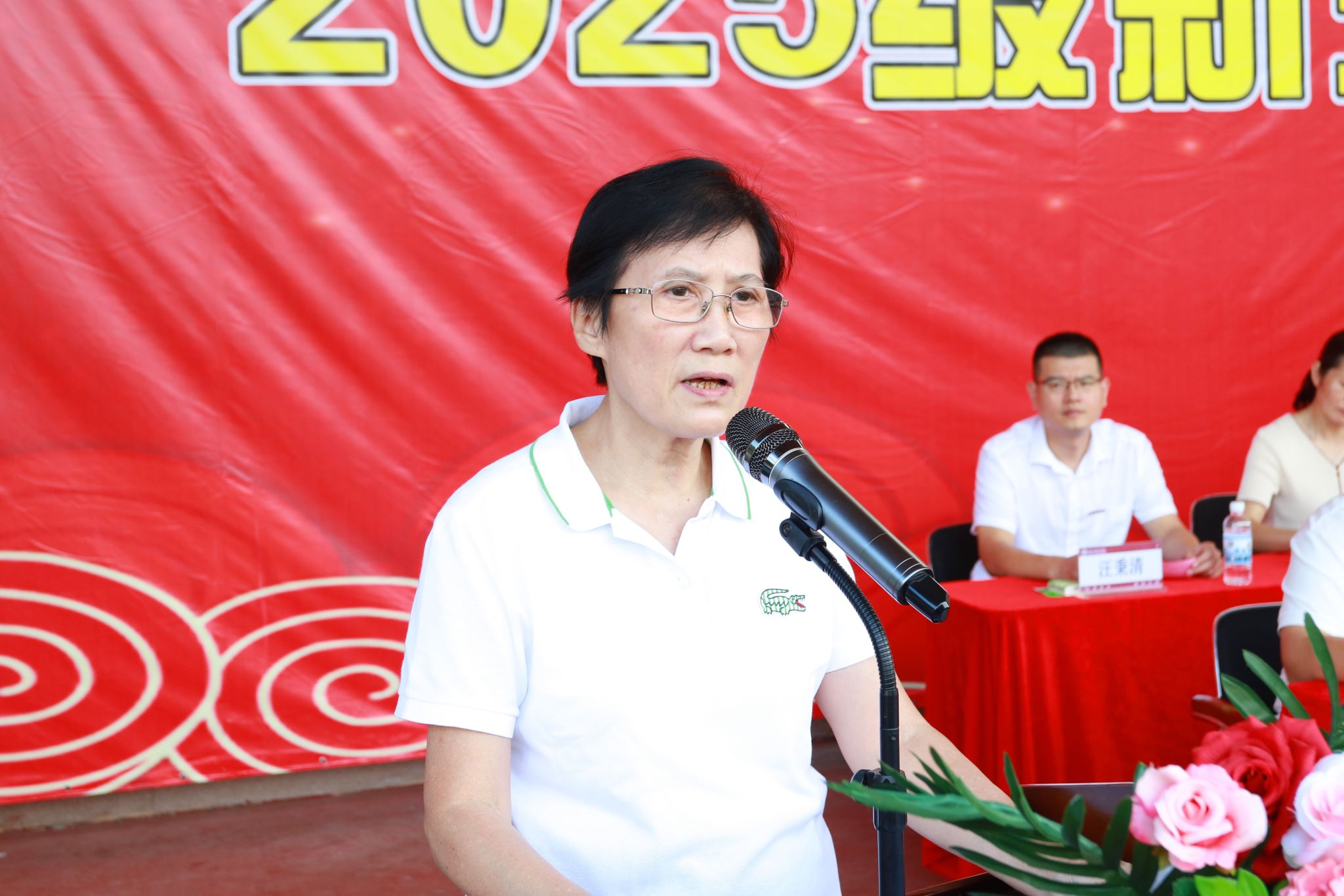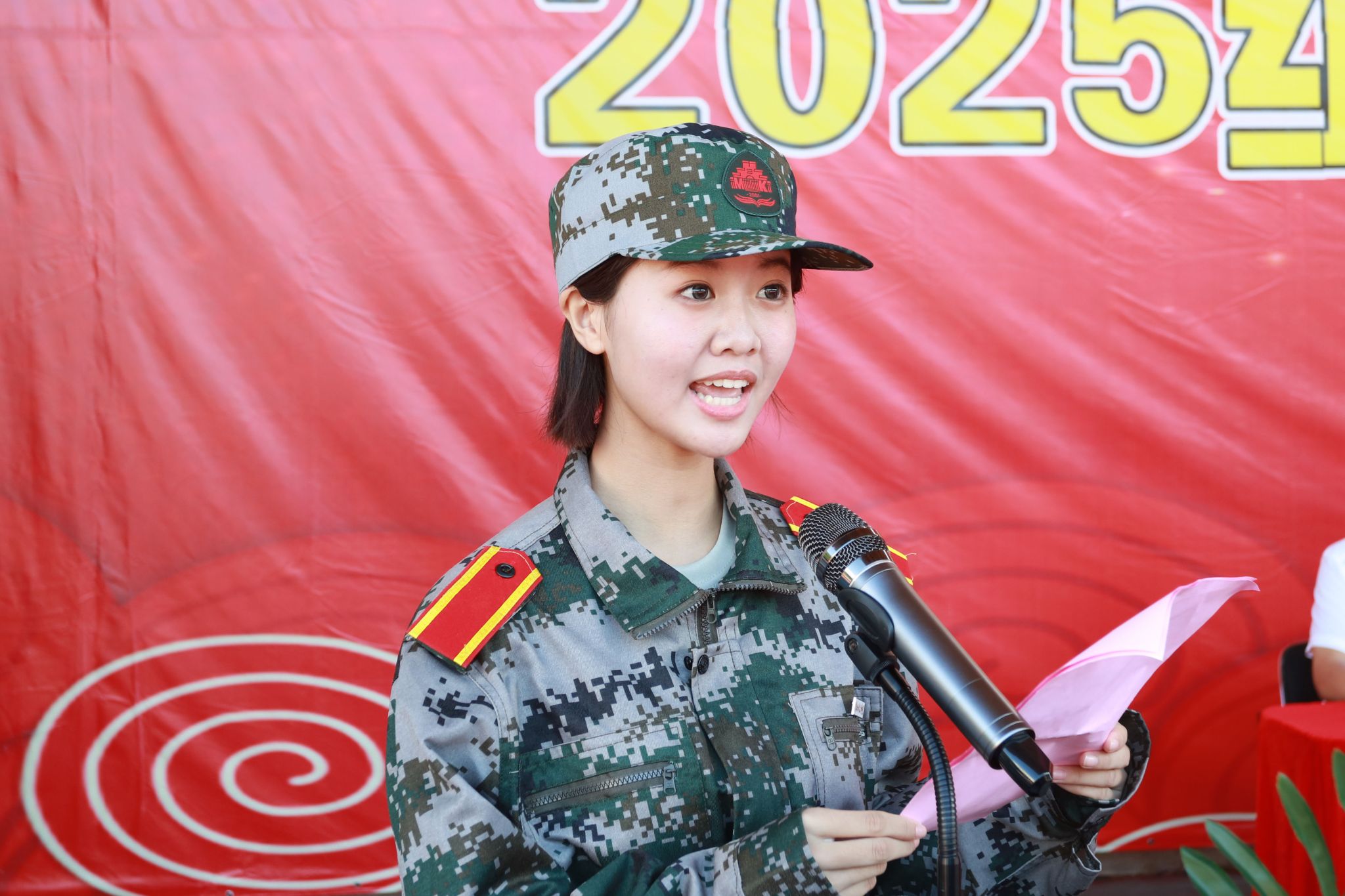 承训部队史立哲少校作军训动员讲话。生命科学与化学学院院长戴玉梅教授作为教师代表,校学生会执行主席、艺术设计学院2023级产品设计专业易云聪同学作为老生代表、商学院2025级市场营销专业林诗琪同学作为新生代表分别发言。