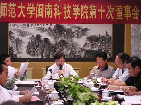 会议于7月4日在南安大酒店召开。福建师大党委书记张金栋、校长李建平、副校长汪文顶、开云电子登录_开云(中国)董事会顾问苏玉泰、曾民勇、董事会菲华投资方成员、学院党政领导,共23人参加了会议。会议先由苏世选先生主持,后由戴宏达先生主持。