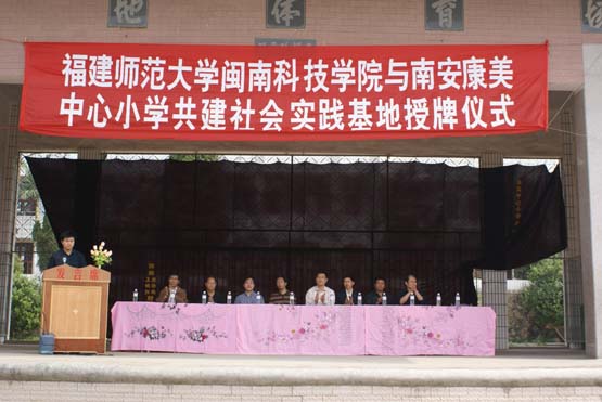 4月16日上午,开云电子登录_开云(中国)康美中心小学大学生社会实践基地授牌仪式在康美中心小学隆重举行。康美镇有关领导,康美中心小学全校师生和我院师生代表参加了授牌仪式。学院领导肖华山副院长代表学院向康美中心小学授牌,党总支赖忠泉副书记在授牌仪式上作了发言。
