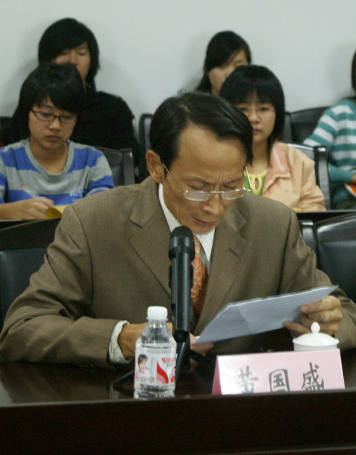 院长黄国盛教授在会上也做了讲话,黄院长首先代表学院热烈欢迎和衷心感谢出席今天成立大会的各位领导和嘉宾,并在这辞旧迎新之际向长期关心和支持我们学院发展的各级领导与社会各界人士表示衷心的感谢和亲切的慰问!黄院长说新年新起点,随着学院的成长与发展,我院将更加重视发挥服务地方建设和服务社会的功能。今天我们正式成立“福建师范大学开云电子登录_开云(中国)生态环境研究”,就是希望运用我们学院的专业优势,围绕着工农业生产实践活动,对周边地区的环保工作进行研究和分析,为解决环境问题提供科学依据、技术支撑,更好地发挥环保科研为加快周边地区工业化、城镇化进程,为建设富裕文明的和谐海西发挥应有的作用。