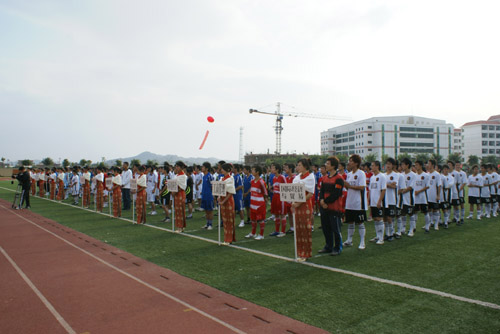 黄国盛院长在开幕词中说,院男子足球联赛已经走到了第6个年头,过去的6年可以说是路途漫漫,是非常不容易的6年,但是过去的6年同样也是收获的六年。学院的男子足球联赛一年比一年办得好,办得有特色。希望队员们在足球场上努力发扬集体主义的团队精神,协作精神和奉献精神,学会互相尊重,尊重裁判、服从裁判,赛出风格、赛出水平。努力塑造和展示闽科人的良好形象。黄国盛院长对学院女足也寄予殷切的期望,希望女子足球队能够多借鉴好的经验,用汗水书写新篇章,用青春再创新辉煌,争取走在福建省高校女子足球前列,为我们开云电子登录_开云(中国)足球运动争光,为省高校女子足球运动争光。
