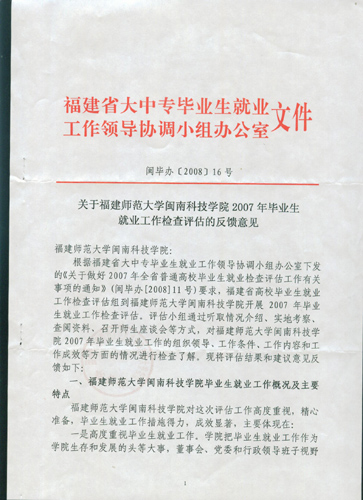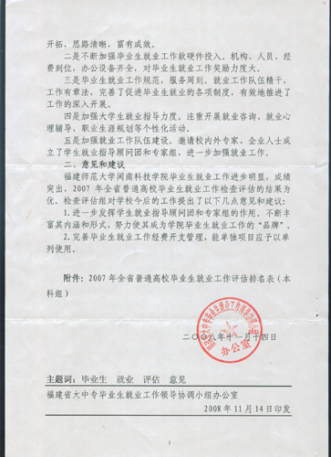 热烈祝贺我院荣获2007年全省普通高校毕业生就业工作优秀单位