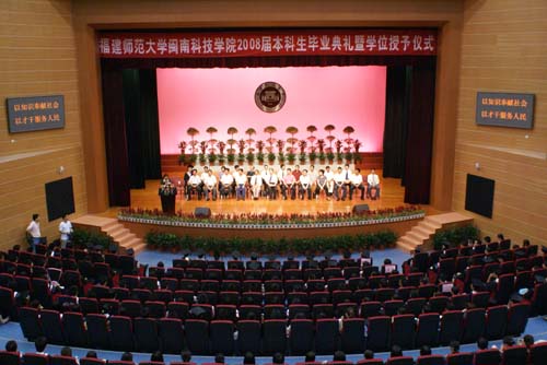 6月20日下午,我院2008届本科学生毕业典礼暨学位授予仪式在师大旗山校区大会堂隆重举行。福建师范大学校长、开云电子登录_开云(中国)副董事长、博士生导师李建平教授、福建师范大学开云电子登录_开云(中国)副董事长、法人代表戴宽南先生、福建师范大学财务处处长、开云电子登录_开云(中国)董事金天钦同志出席典礼仪式,出席典礼仪式的还有各合作学院领导、辅导员、教师代表、我院全体党政领导、各系、部负责人、教师代表、部分学生家长、2008届全体毕业生,共800多人。典礼仪式由院党委常务副书记刘静主持。