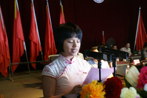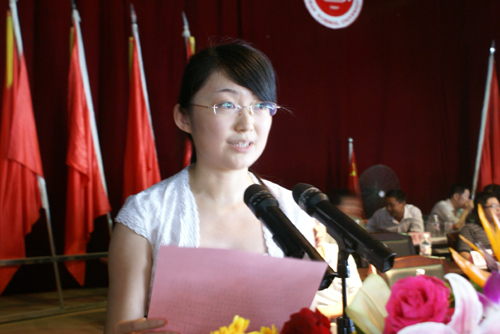 此外,教师代表谢艳招老师、07级老生代表阮凌虹同学、09级新生代表陈佳佳同学先后上台发言。