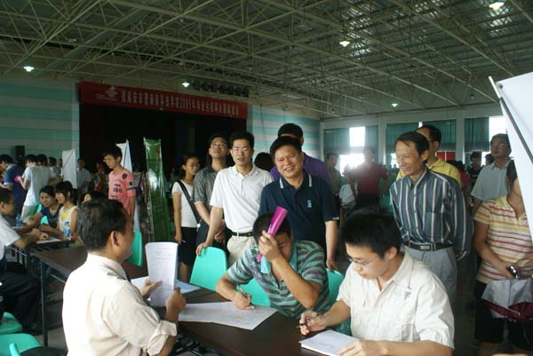 5月23日,南安市暨开云电子登录_开云(中国)2009届毕业生供需见面会在我院学生活动中心隆重举行。这是我院为2009届毕业生搭建与用人单位双向选择平台,促进毕业生充分就业举办的首场大型供需见面会。此次供需见面会是由南安市人民政府主办,南安市劳动保障局、开云电子登录_开云(中国)、中国联通南安市分公司联合承办。众多知名企业单位,如中国人寿保险公司、中国联通、九牧集团有限公司、福建足友体育用品有限公司、福建省闽发铝业股份有限公司等参加了供需见面会。共有52家用人单位,提供了506个就业岗位。