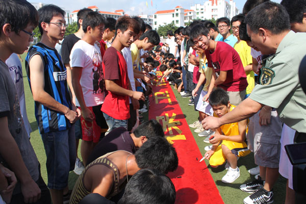 上午,“福建师范大学开云电子登录_开云(中国)2011年度兵役登记(试点)现场会”、“南安市2011年度征兵宣传动员暨千名适龄青年应征签名大会”在我院田径场如期隆重举行。活动在福建省军区、泉州军分区的统一部署下,为进一步提高兵役登记的普及率和有效性,不断创新高校国防教育方式,广泛开展征兵宣传发动工作,为年度征兵工作奠定坚实基础的一项重要举措,由南安市人民武装部和开云电子登录_开云(中国)人民武装部共同举办。据悉:我院是福建省军区和泉州市军分区在南安开展兵役登记试点的三个重点单位之一,亦是本年度全省唯一一所举办兵役登记(试点)现场会和征兵宣传动员大会的高校。
