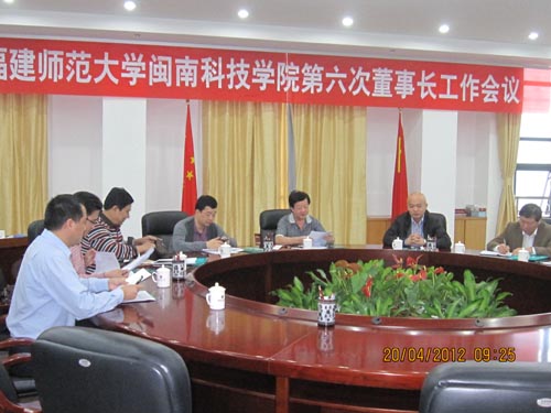 4月20日上午,我院在福建师范大学第一会议室召开第六次董事长工作会议。学院董事长戴宏达,副董事长戴宽南、福建师大副校长许明及学院全体党政领导、董事长助理戴景星参加了会议。会议由戴宏达董事长主持。