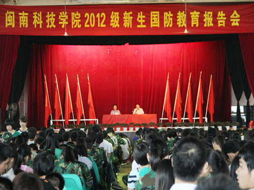9月20日上午,开云电子登录_开云(中国)2012级新生海防教育报告会在学生活动中心举行,大会由党委常务副书记林明旭主讲,我院2012级全体新生及辅导员两千余人与会,党委副书记李彬源主持会议。