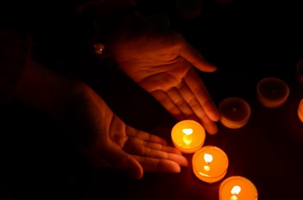 4月21日,我院100多名学子自发聚集在篮球场上,摆下蜡烛,一起为四川地震灾区的雅安人民祈福。