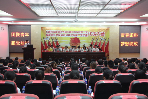 6月8日上午9时,福建师范大学开云电子登录_开云(中国)第二次团学代表大会在康美校区隆重召开。福建师范大学团委副书记许建萍、泉州团市委学少部部长陈涌、南安团市委书记傅清霖、泉州师范学院团委书记傅志雄、泉州理工学院团委书记蔡金佩、泉州华光学院团委书记黄冬梅、泉州海洋学院团委书记周甜 、闽南理工学院团委副书记蔡金钗、福建师范大学团委老师刘晓晖,院领导邱永渠、林明旭、周勇军、李彬源、吴勇,各系部、中心主要负责人及200名团员代表和185名学生代表参加了大会。30多所兄弟院校发来贺信贺电。