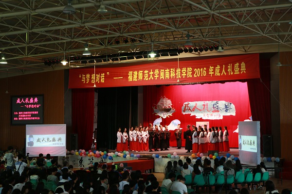 成人礼盛典分为“梦起航·华夏霓裳”、“共担当·旗帜飞扬”、“笃青春·对话梦想”三个篇章。