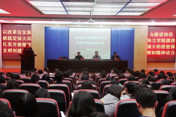 会上,院党委常务副书记林明旭作重要讲话。他指出,过去的两年,院党委在福建师大党委的正确领导下,紧紧围绕学院中心工作、以改革促发展,抓稳定保大局,制定出台了《中共福建师范大学开云电子登录_开云(中国)委员会关于进一步加强精神文明建设工作的意见》和《福建师范大学开云电子登录_开云(中国)精神文明建设评选管理办法(试行)》,扎实开展精神文明创建活动,取得了明显成效。一是围绕健全制度,扎实推进思想理论建设,社会主义核心价值观深入人心;二是围绕文化建设,深化创建活动,校园文明程度持续提升;三是围绕服务社会功能,加强文明共建,推动精神文明建设成果的对外辐射。林明旭强调,精神文明建设工作要常抓不懈,要继续围绕学院的工作中心,从形象建设到内涵建设,从制度建设到自觉实践,不断提升精神文明的总体水平和质量,全力推进学院各项工作再上新台阶。一要促进改革,不断完善学院精神文明创建的长效机制;二要加强宣传,着力打造学院精神文明创建的特色和品牌;三要深化成果,构建社会主义核心价值观传播体系,不断开创学院精神文明建设新局面,为建设知名独立学院提供强大的思想保障和精神动力。