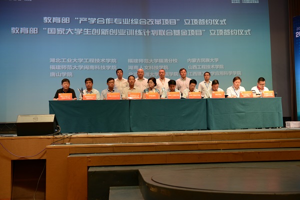 在2016年教育部产学合作专业综合改革和国家大学生创新创业训练计划项目研讨会暨中国校企合作软件人才培养高峰论坛(第七届)上,吴勇副院长代表学院与中软国际签定项目合作协议,并在“创新创业人才培养探索实践”嘉宾论坛上发言。他全面分析了新形势下独立学院校企深度合作的方向和内涵,重点介绍了我院近年来在大学生创新创业训练计划项目方面所取得的经验和成果。