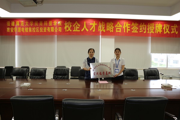 5月23日,学院生命科学与化学系与南安市华源电镀集控区投资有限公司、福建省本讯环境检测有限公司双方代表签订实践教学基地合作协议,并举行授牌仪式。