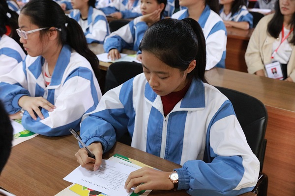 康美中学学生张芳玉分享了自己第一次接触造血干细胞捐献知识的感受,通过活动她感受到人与人之间互相帮助的温暖与快乐,在今后的学习生活中,将践行林金纶同学大爱无私的精神,成为道德的传承者、践行者和受益者。