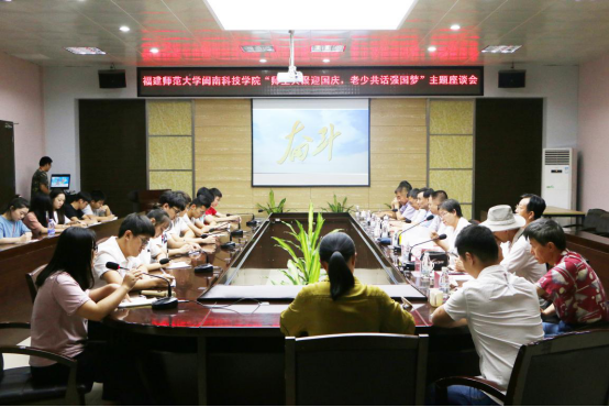 9月26日下午,院关工委和团委联合举办“师生共聚迎国庆,老少共话强国梦”主题座谈会。院党委常务副书记林明旭、学院关工委成员,及首届“大学生年度人物”获得者等青年学生代表参加座谈会,会议由院关工委主任杨文琴主持。