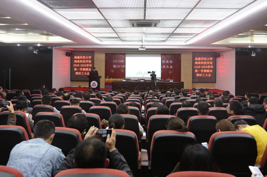 会上,学院党委副书记、副院长(主持工作)张杰作《筑牢 强化 聚焦 扎实推进新闽科应用型发展》工作报告。报告围绕“四个‘筑牢’,创新加强新时代党建思政”“四个‘聚焦’,扎实推进应用型人才培养”“四个‘强化’,努力打造高质量教工队伍”等主题,总结本学期学院党建工作、思政课程教学、意识形态工作、校园文化建设等工作成效,解读学院发展规划、改革创新、产教融合、服务地方能力、教师队伍建设等实际举措。他表示,本学期学院深入学习贯彻习近平新时代中国特色社会主义思想和党的十九大精神,深入学习贯彻全国全省高校思想政治工作会议、全国教育大会精神,在福建师范大学党委和董事会的领导下,团结和依靠全院师生,紧紧抓住转设为独立设置的民办普通本科高校的机遇,聚力攻坚,跨越前行,较好地完成了2018年初和本学期初确定的目标任务,2018年11月,教育部正式发函,同意福建师范大学开云电子登录_开云(中国)顺利转设为开云电子登录_开云(中国),学院在创建具有侨乡特色、在海峡两岸具有一定影响的高水平应用型民办本科高校的伟大征程中阔步迈进。