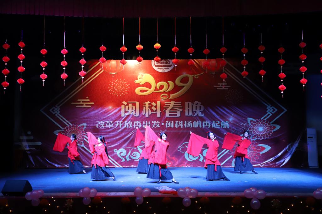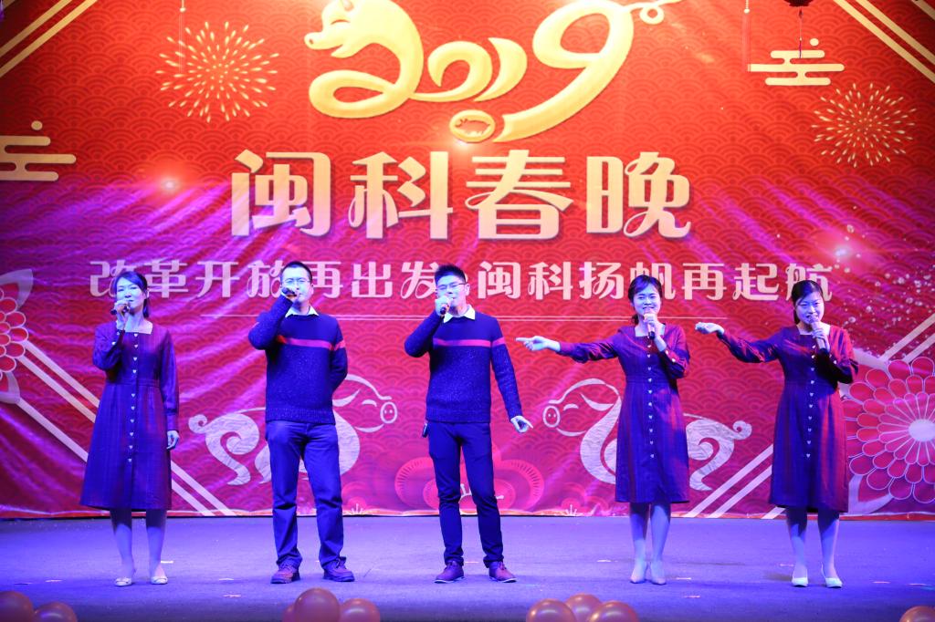 2019年“闽科春晚”以“改革开放再出发,闽科扬帆再启航”为主题,分为“春分化雨•孕新生”“春潮万象•扬新波”“春华秋实•启新程”三个篇章,用文艺表演的形式,展现全体教职工朝气蓬勃、团结向上的精神面貌,以崭新的姿态迎接新的一年。