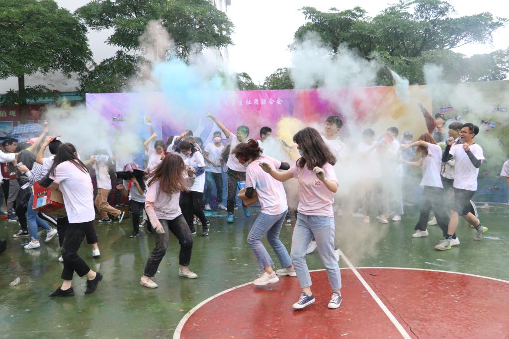4月13日下午,康美校区共青团广场上呈现一片彩色的海洋,数百名学生手持彩旗环绕校园开展活力彩跑,洋溢着一片青春活力的景象,为期一个月的第十届学生社团文化巡礼月在彩跑活动中拉开了序幕。