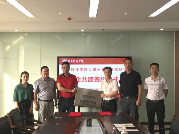 10月10日下午,我校与泉州锐驰智能科技有限公司校企共建签约仪式在明德楼20楼会议室举行。锐驰集团副总裁吴德福,学校副校长吴勇,光电信息学院、教务部等相关职能部门负责人参加仪式。