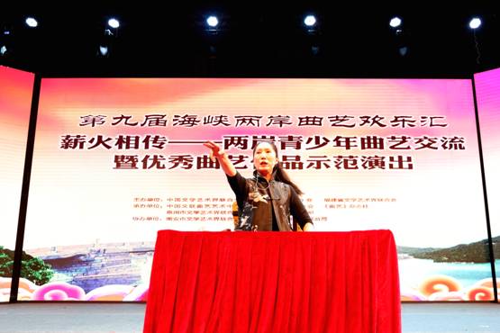 9月12日,第九届海峡两岸曲艺欢乐汇首场演出“薪火相传——两岸青少年曲艺交流暨优秀曲艺作品示范演出”在我校学生活动中心举行。中国曲协分党组副书记、秘书长曲华江,福建省文联党组成员、书记处书记、副主席林瑞发,中国文联曲艺艺术中心副主任刘一多,南安市人民政府副市长王昭昭,福建省曲协主席、福州市曲艺团团长陈晓岚,南安市文化体育和旅游局局长李长青,我校校长助理、学工部部长林树生及师生近两千人观看演出。演出由中国煤矿文工团青年相声演员应宁主持。