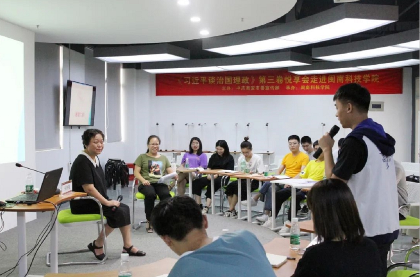为贯彻落实党中央及省委有关文件精神,扎实做好《习近平谈治国理政》第三卷的学习宣传贯彻和进高校工作,9月23日下午,中共泉州市委讲师团团长朱林果副教授到我校作《认真学习<习近平谈治国理政>第三卷的重要精神》主题宣讲。南安市委宣传部柯琳琳、蔡友圣陪同进校,校领导吴勇,相关职能部门工作人员、马克思主义学院师生代表到场聆听。