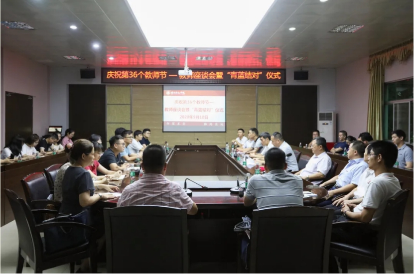 9月10日下午,我校举办教师座谈会暨“青蓝结对”仪式。校领导游小波、周勇军、吴勇,2020年新入职教职工、部分教师代表及相关职能部门负责人参加会议。会议由常务副校长周勇军主持。