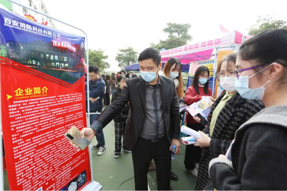 本次招聘会共有近百家南安本地企业为毕业生提供各类岗位600多个,涵盖了装备制造、环保、智能科技、互联网、日用轻工、教育等产业,吸引了广大毕业生前来应聘。“选择岗位更注重是否专业对口。”艺术设计学院2017级广告学专业刘丽同学说,自己比较关注新媒体运营行业,希望能找到与自己专业匹配的岗位。